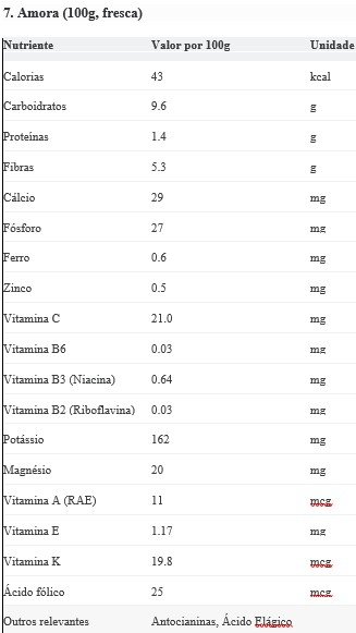Teor Calórico: Baixo (43 kcal/100g).