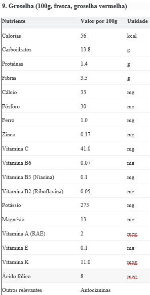 Curiosidades: A groselha preta (Ribes nigrum) é uma das frutas mais ricas em antocianinas e Vitamina C (podendo ter até 4x mais que a laranja), sendo muito usada em licores e xaropes.