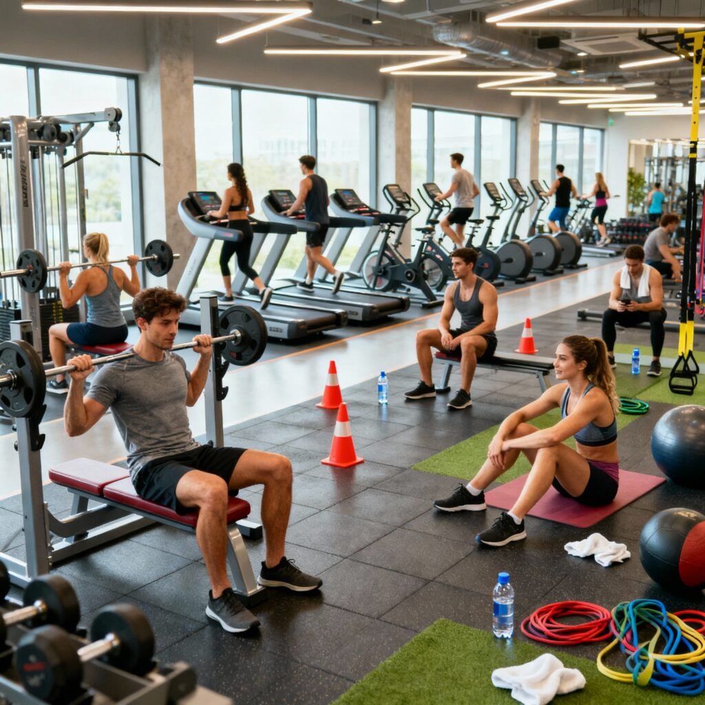- Academias Comerciais: A opção mais completa, com uma vasta gama de equipamentos para todos os níveis e a presença de profissionais.