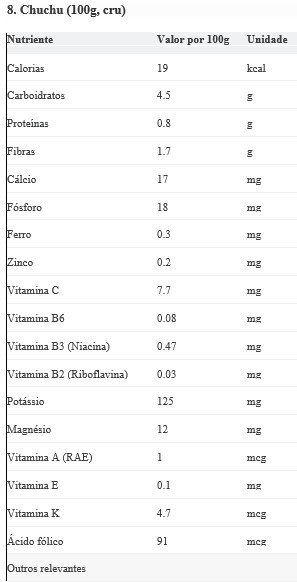 Curiosidades: O chuchu é botanicamente um fruto da mesma família da abóbora e do pepino. É conhecido pela sua versatilidade e preço acessível.