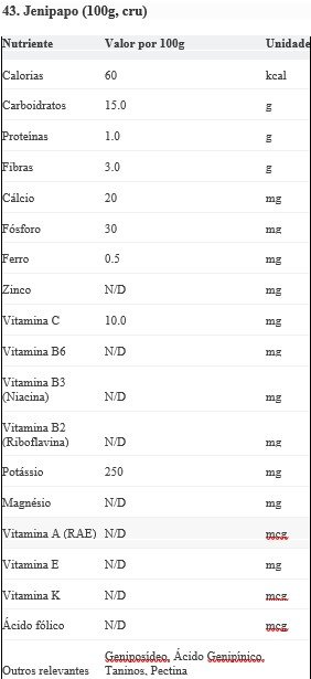 Curiosidades: O jenipapo é muito utilizado na culinária popular do Nordeste do Brasil, principalmente para fazer doces, licores e sucos. Indígenas utilizam o fruto para pintura corporal e na pele como protetor solar natural.